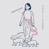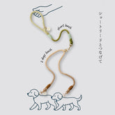 ロープ中央のリングにお手持ちのリードを繋げるだけで、多頭散歩用リードとして簡単に使えます。