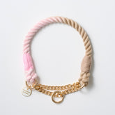 ハーフチョークタイプは、わんちゃんが引っ張るとチェーン部分が締まる仕組みになっています。これにより、引っ張り癖のあるわんちゃんの散歩マナーを教える際に活用されています。チェーン部分だけが締まり、ロープ部分は締まらないため、安全にトレーニングを行えます。